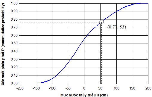 Hình 5. Đường phân phối xác suất tích lũy thực nghiệm của mực nước thủy triều 19 năm tại 1 điểm tính