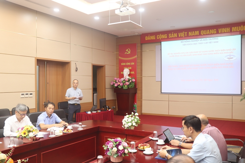 Phát biểu tại Hội thảo, PGS.TS. Nguyễn Thanh Bằng - Phó Giám đốc Viện cho biết đây là đề tài cấp Bộ được Bộ Nông nghiệp và Phát Nông thôn (nay là Bộ Nông nghiệp và Môi trường) giao Viện Khoa học Thủy lợi Việt Nam chủ trì thực hiện. Trong quá trình triển khai thực hiện, nhóm cũng đã thực hiện rất nhiều nội dung nghiên cứu từ tiến hành về khảo sát thực địa tại nhiều tỉnh miền núi phía Bắc; phân tích các mô hình trong và ngoài nước; tổ chức các hội thảo tọa đàm, các hội nghị chuyên đề với sự tham gia của các chuyên gia, nhà khoa học, nhà quản lý, các cán bộ kỹ thuật ở cơ sở. Các kết quả nghiên cứu đã đề xuất được một hệ thống các giải pháp kỹ thuật, công nghệ và quản lý để xem xét, áp dụng cho các công trình ở nhiều cấp độ khác nhau.