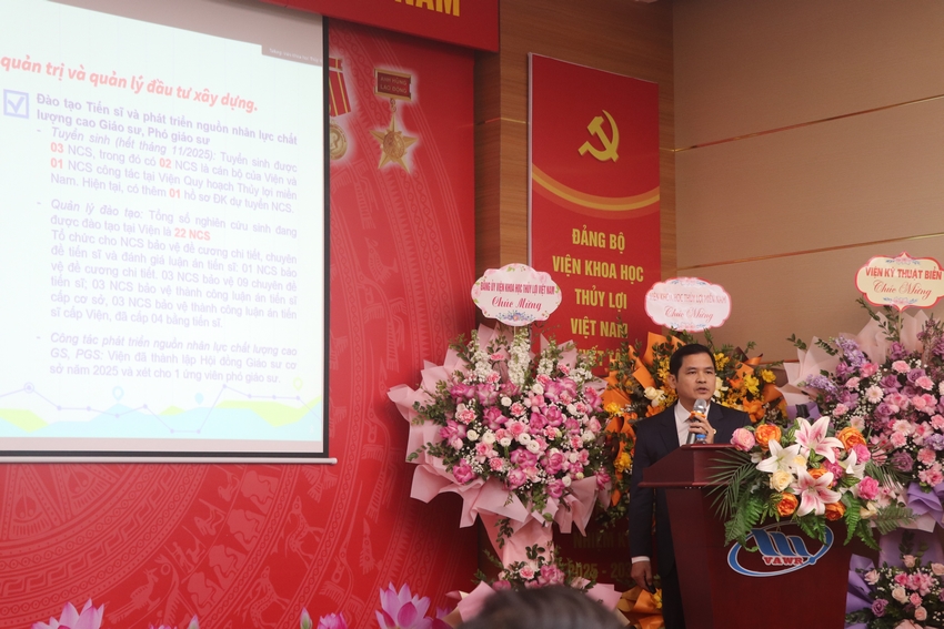 Thay mặt tập thể cán bộ công nhân viên, người lao động của Viện Khoa học Thủy lợi Việt Nam, GS.TS. Trần Đình Hòa cho rằng năm 2025 là năm đặc biệt khó khăn, thách thức nhưng Viện Khoa học Thủy lợi Việt Nam có được kết quả này là nhờ có sự chỉ đạo, hỗ trợ, tạo điều kiện của các đồng chí lãnh đạo Bộ Nông nghiệp và Môi trường cũng như sự ủng hộ, tạo điều kiện của các Cục, Vụ thuộc Bộ.