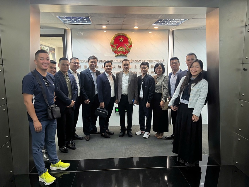 Đoàn chụp ảnh kỷ niệm với lãnh đạo Lãnh sứ quán Việt Nam tại Thành phố Thượng Hải (Ảnh Chí Trung)