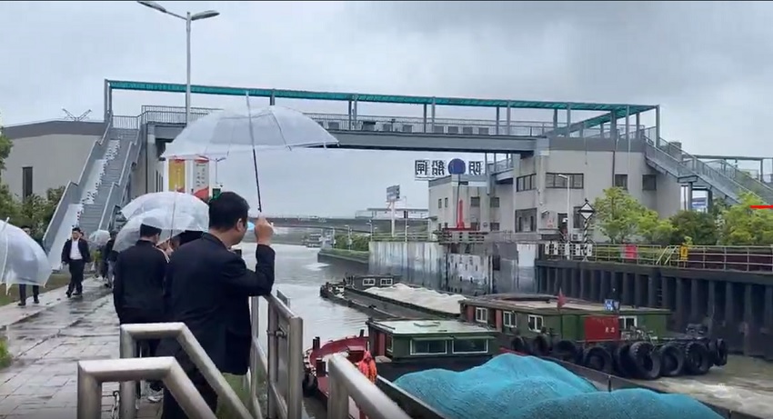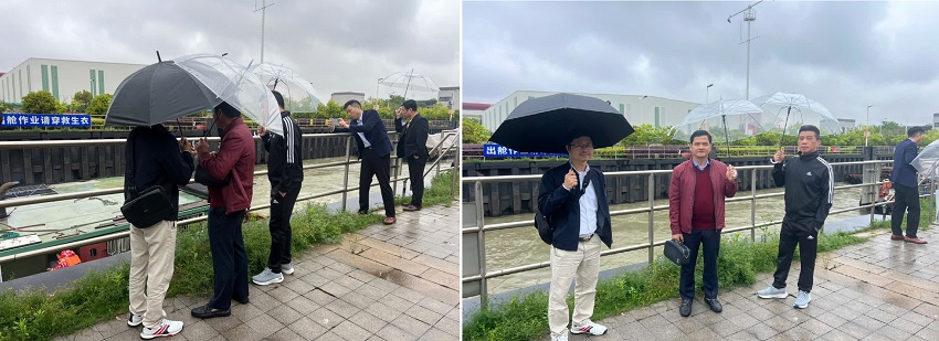 Đoàn tham quan âu thuyền Tân Hạ Cảng Giang Âm (âu thuyền đầu tiên tại châu Á sử dụng kết cấu toàn bộ bằng cọc ván thép, khởi công năm 2012, hoàn thành và đưa vào sử dụng năm 2013 do Tập đoàn Jinxi thiết kế, thi công, công trình đã nhận được nhiều giải thưởng về kỹ thuật và xây dựng, đặc biệt là Giải thưởng Công trình Chất lượng Quốc gia Trung Quốc. Đây là công trình đóng vai trò là "yết hầu" kết nối mạng lưới giao thông thủy nội địa của toàn bộ khu vực Vô Tích với tuyến đường thủy huyết mạch Trường Giang, năng lực 2 luồng tàu cho phép tàu 1.000 tấn đi qua)