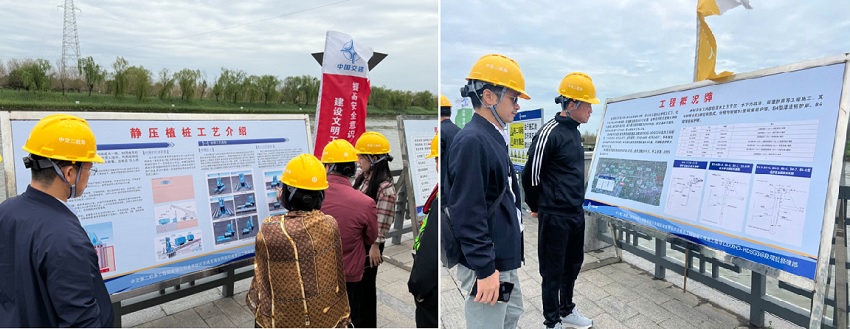 Trong ngày thứ 3, Đoàn tham quan công trường xây dựng đê tuyến Liên Thân và quan sát thực tế thi công cọc ván thép ép tĩnh. Tuyến Liên Thân là một trong những tuyến đường thủy nội địa vô cùng quan trọng tại tỉnh Giang Tô. Tuyến đường thủy này chạy dọc theo bờ biển, song song với Kênh Đại Vận Hà, đóng vai trò là "huyết mạch" giao thông thủy thứ hai của vùng đồng bằng sông Trường Giang.
