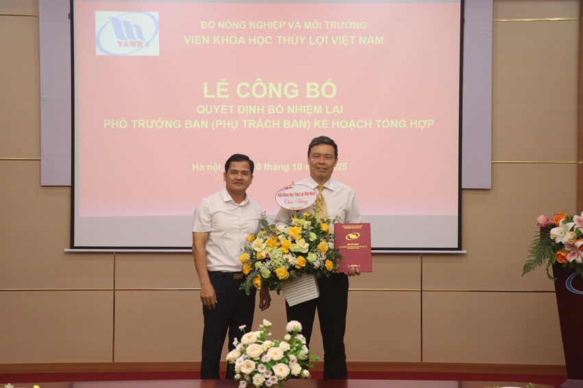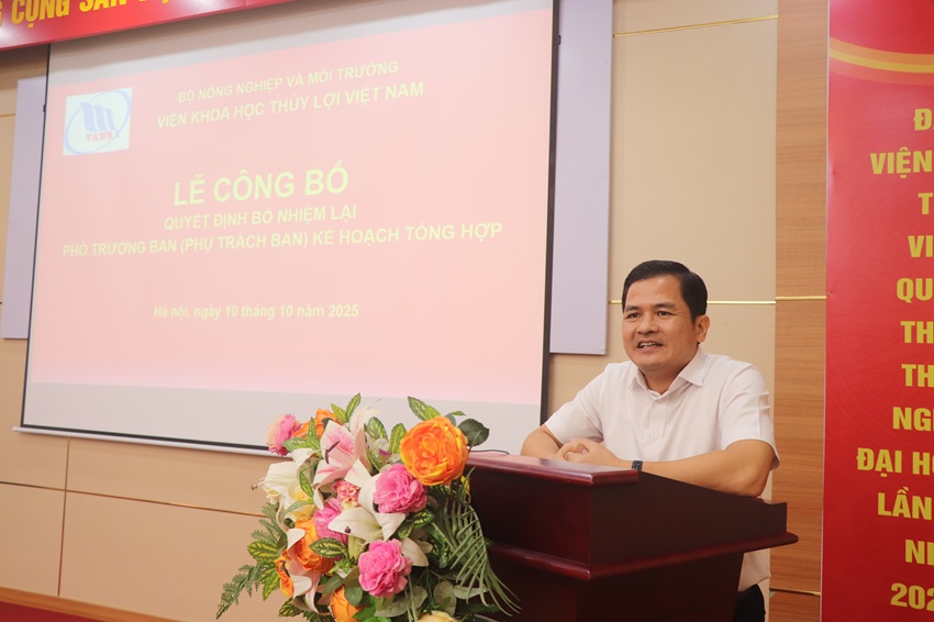 Sáng ngày 10/10/2025, Viện Khoa học Thủy lợi Việt Nam đã tổ chức lễ công bố quyết định bổ nhiệm lại Phó Trưởng Ban (phụ trách) Kế hoạch Tổng hợp đối với đồng chí TS. Phạm Văn Ban
