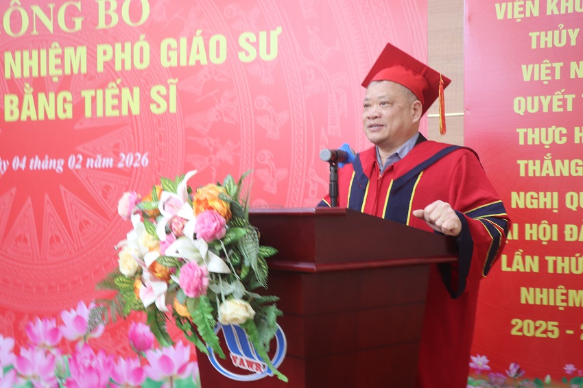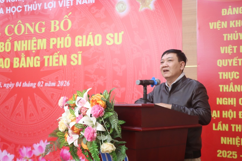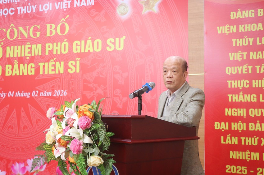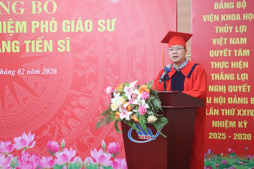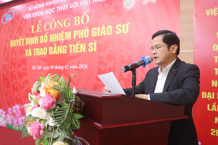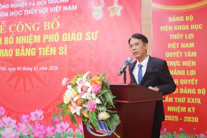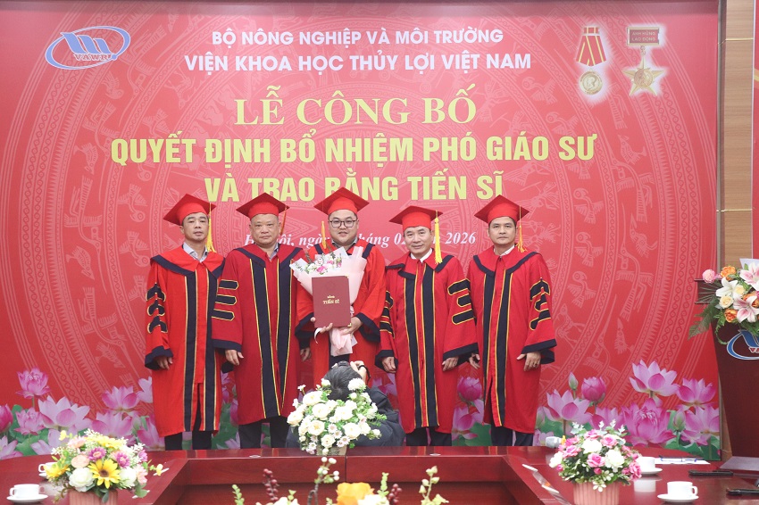 05/02/2026Chiều ngày 04/2, Viện Khoa học Thủy lợi Việt Nam đã long trọng tổ chức lễ công bố quyết định bổ nhiệm Phó Giáo sư cho cán bộ thuộc Viện và trao bằng tiến sĩ năm 2025 cho các NCS đã đào tạo thành công tại Viện.
