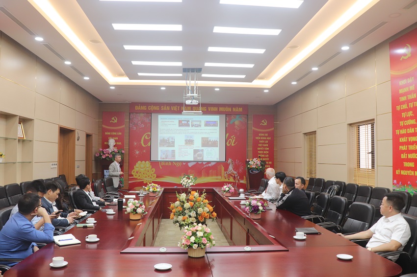 Tại buổi làm việc, TS. Đinh Văn Đạo đã trình bày tổng quan về cơ cấu tổ chức, chức năng nhiệm vụ của Viện, đồng thời giới thiệu các kết quả nghiên cứu nổi bật như đánh giá tính khả thi phát triển hệ thống đập dâng trên sông Hồng, các công nghệ xây dựng đập phục vụ chỉnh trị sông và các nghiên cứu về kinh tế nước - những nền tảng quan trọng để tích hợp các giải pháp sinh thái như đường cá trong tương lai.
