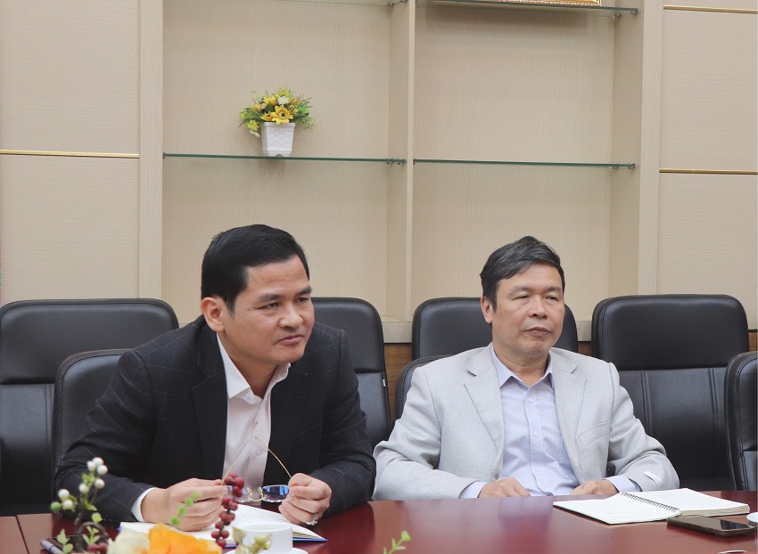 PGS.TS. Nguyễn Thanh Bằng - Phó Giám đốc Viện (ngồi thứ nhất từ trái sang) phát biểu tại buổi làm việc