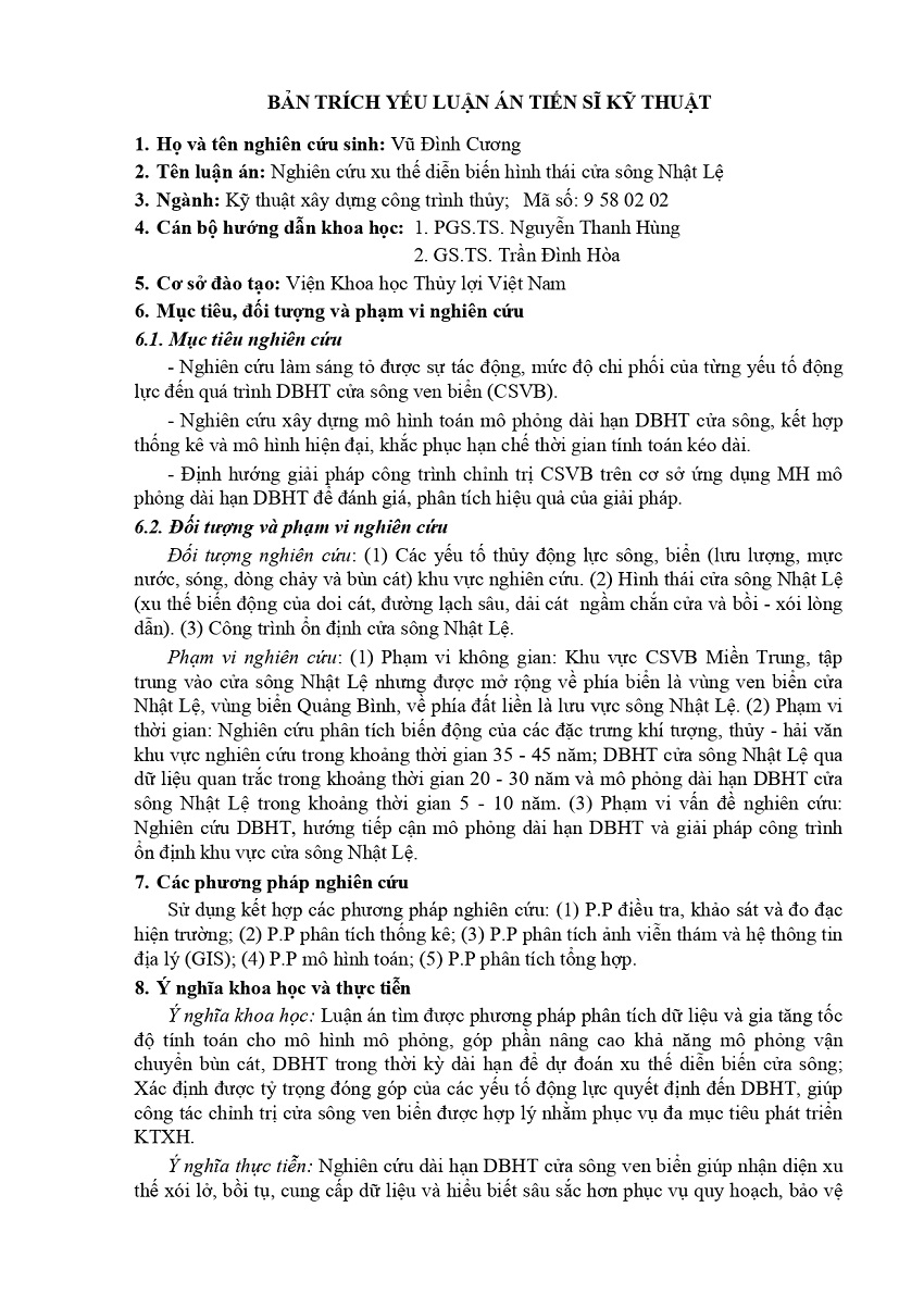 - Tóm tắt luận án Tiếng Việt - NCS. Vũ Đình Cương