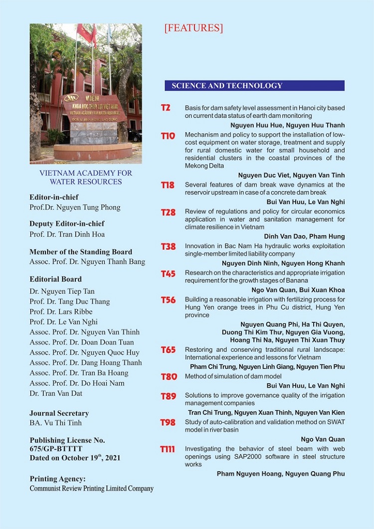 | According to general assessments in the world as well as in Vietnam, one of the main causes of dam failures is seepage and structural instability. Monitoring equipment arranged in the dam body plays an important role in providing information to help operations managers early identify risks and have timely treatment plans. However, dams in Hanoi city have only installed water level monitoring equipment and a few reservoirs have installed saturation line monitoring equipment in the dam body. To make the most of existing monitoring data, the article presents the results of assessing the level of dam safety in the city according to the current status of earth dam monitoring data for 2 typical cases, including: (i) The project is installed with water level monitoring equipment. Through dam inspection, seepage appears on the downstream slope of the dam, outside the drainage equipment; (ii) The project is synchronously installed with water level monitoring equipment and saturation line monitoring equipment in the dam body. Keywords: Dam monitoring, dam safety, dam safety level, Hanoi reservoir dam |